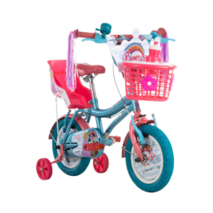 Fabricada en material de acero hidroformado sus accesorios en material de resina está equipada con una canasta con tapa y caramañola en forma de corazón, y una silla porta muñecas. Con ruedas auxiliares, rines en aluminio con placas decorativas de princesas. Además, cuenta con cubrecadena y guardafangos para protegerla de la suciedad y los enredos.